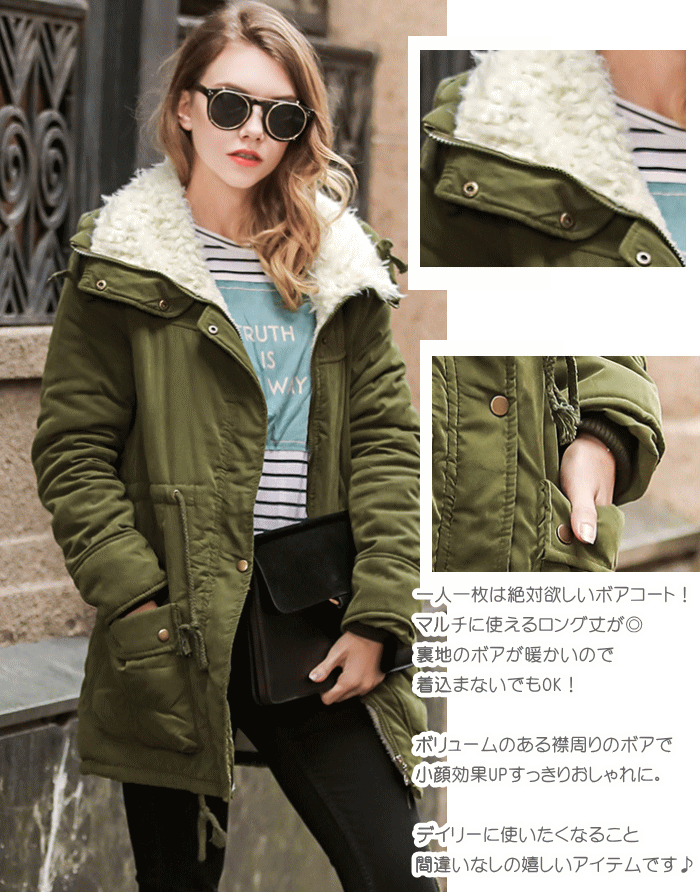 在庫処分セール ボアコート フードなし コート ロング丈 Aライン ミリタリーコート 裏ボア 裏起毛 厚手 防寒 大きいサイズ 中綿 春 秋冬 返品交換不可(アパレル)
